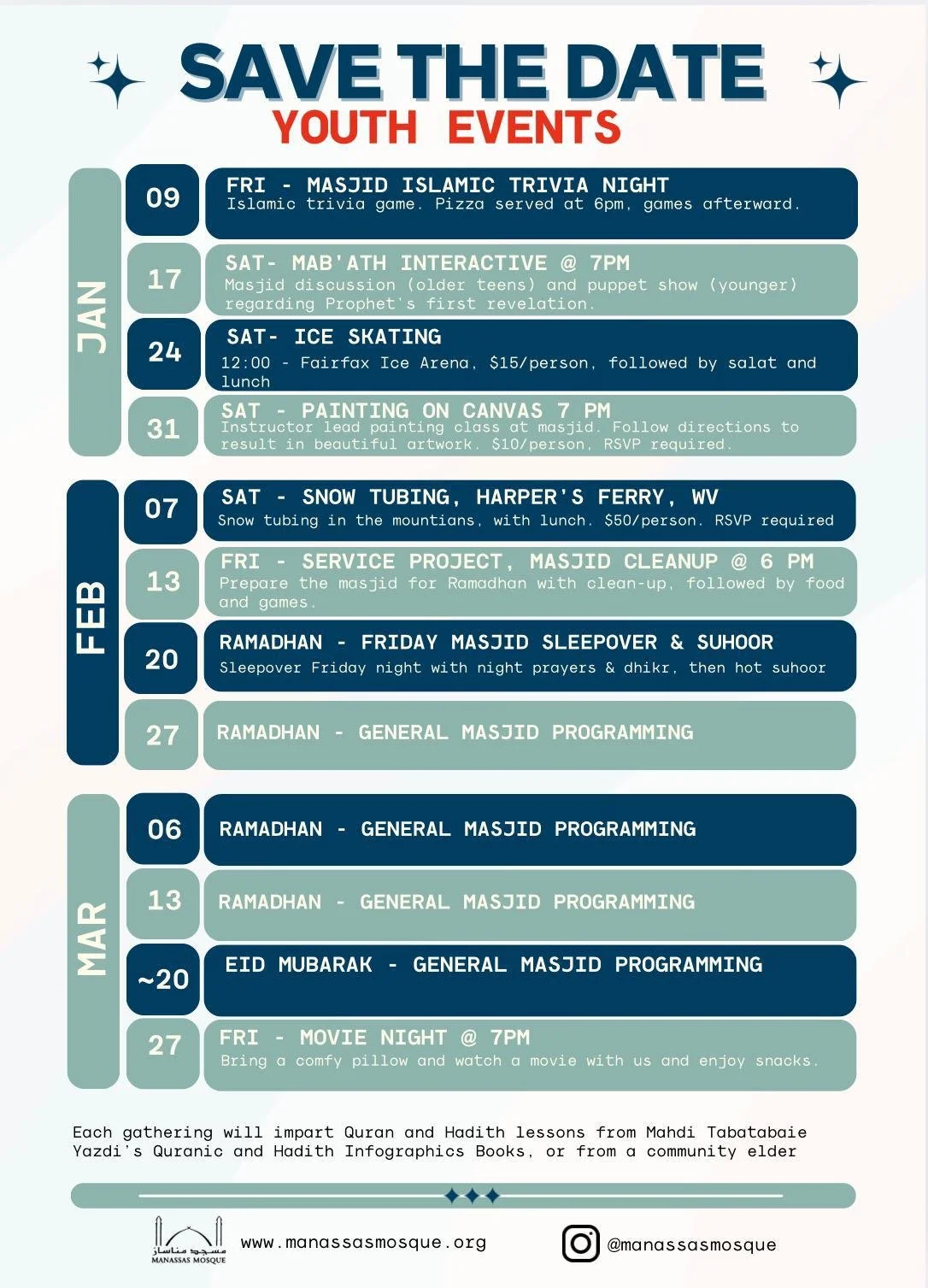 Manassas Mosque is a non-profit organization committed to serving the educational, religious, and social needs of the Muslim community in the larger Washington D.C. metro area. Founded in 1994, Manassas Mosque has prided itself on being a diverse, non-sectarian, open, and judgment-free house of worship (masjid) that serves a multi-cultural, multi-ethnic, multi-lingual, and multi-racial Muslim community. Its principles and activities are rooted in the teachings of the Holy Qurʾān and the example (sunna) of Prophet Muḥammad (ṣ), as transmitted and practiced by his family, the Ahl al-Bayt (ʿa). Manassas Mosque is committed to civic and civil engagement with other faith communities and society at large.